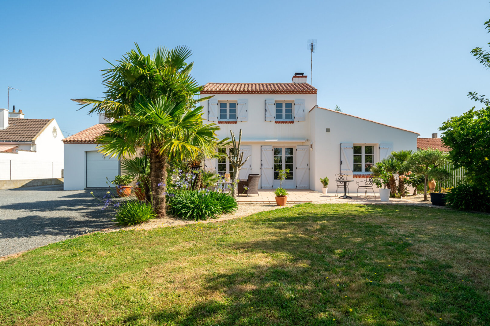 COURGEON IMMOBILIER - SAINT PHILBERT DE GRAND LIEU - EXCLUSIVITÉ - Proche bourg, laissez-vous séduire par cette jolie maison sur un beau terrain arboré et entièrement clos de 3125m² sans vis à vis, offrant une grande pièce de vie sur terrasse orientée sud, cheminée foyer fermé, une cuisine ouverte A/É, une grande lingerie, 3 chambres dont 1 avec dressing, (possibilité 4 chambres), une mezzanine, une salle de bains + douche. Deux grands garages (40 et 50m²) complètent ce bien. Possibilité division parcellaire. Proche toutes commodités (école, commerces...), UNE VISITE S'IMPOSE!!! (4.44 % d'honoraires TTC à la charge de l'acquéreur.)